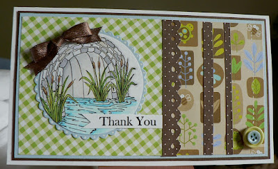 Our sponsor this week is DRS Designs which generously gave each team member who requested it a lovely rubber stamp. I used the cattails in the flowing water for my card, it was a lot of fun to color!